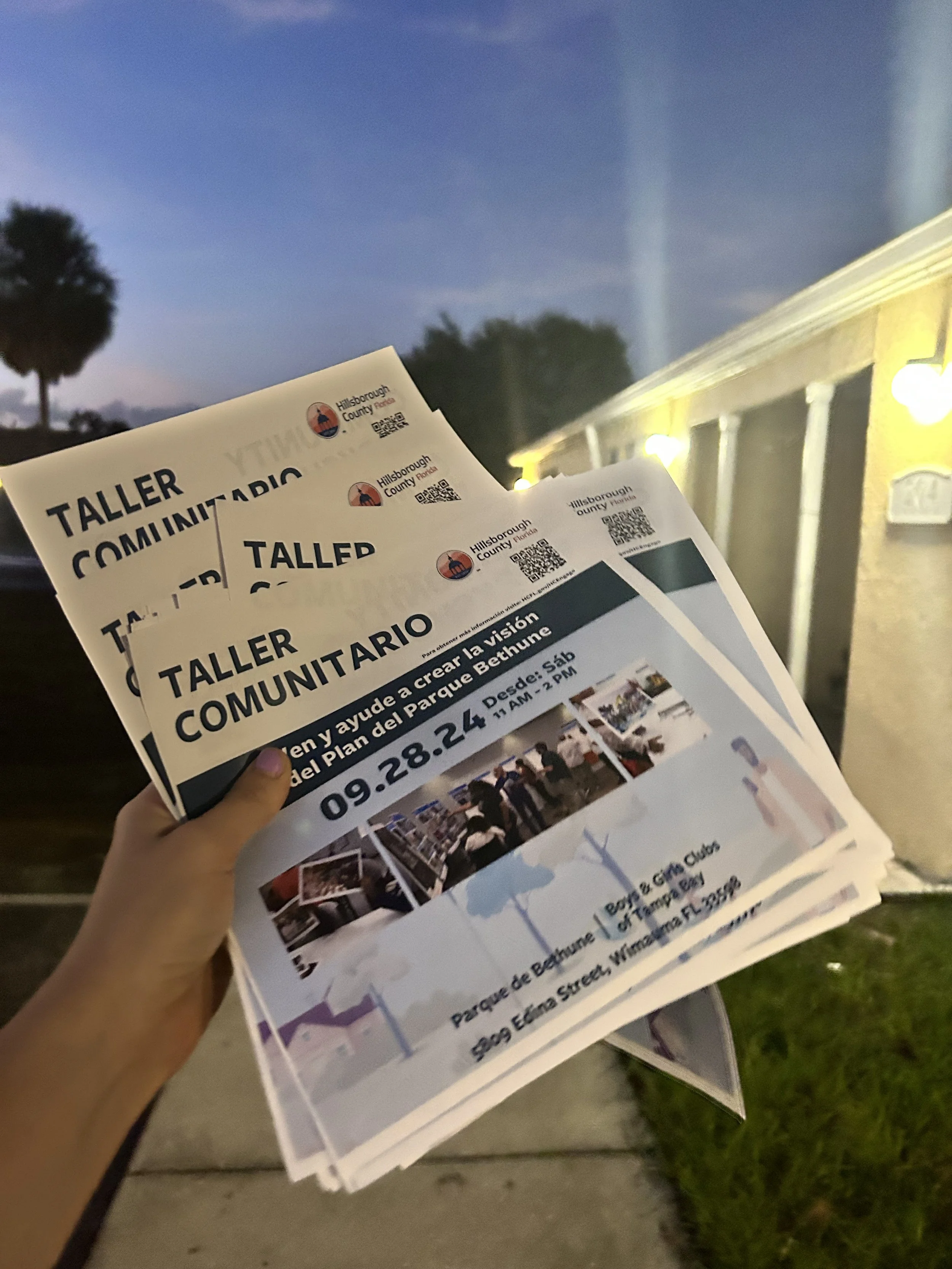 CCC partnered with Stantec and Hillsborough County to create a community-centered masterplan for the historic Bethune Park in Wimauma. The plan includes a new library and community center, designed through a bilingual engagement process involving direct outreach (door-knocking), resident gatherings, and collaboration with local schools and youth organizations.